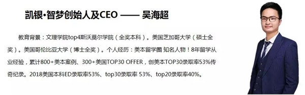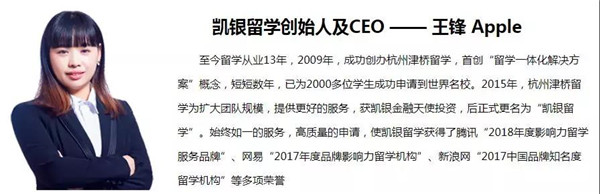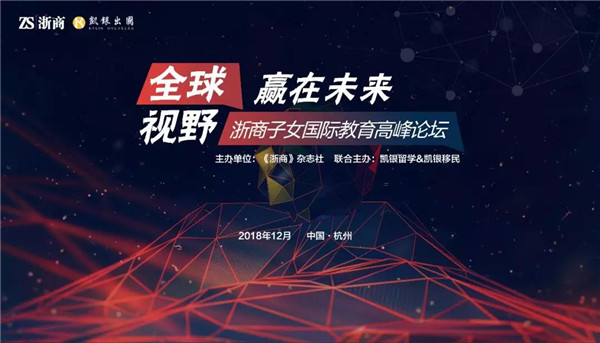 随着经济全球化的迅猛发展, 人力资源和物质资源在世界范围内跨国、跨地区流动成为新常态, 教育要素的国际流动,资源的优化配置,也成为教育国际化的大趋势。 随着中国政治在全球经济治理中地位的不断突出, 社会对国际化人才的需求也已经日益膨胀, 特别是对精英家庭来说,教育的国际化发展已成为必然趋势。 过去的十界《浙商》年会,都在浙江经济版图上留下了浓厚的一笔,是浙商人口耳相传的重大盛会。今年,主办方将目光聚焦于浙商子女的教育上,期望通过国际教育助力新一代的浙商人茁壮成长,为浙江,为祖国注入新力量! 2018(第十一届)《浙商》年会期间,浙商传媒特邀凯银出国联合主办“全球视野,赢在未来”2018浙商子女国际教育高峰论坛,同时邀请知名浙商家庭、名校校长、教育专家等,共同探讨在全球化的时代背景下,精英教育该如何破题。 时间:2018 年12月20日下午 13:00-16:30 地点:洲际酒店· 杭州厅567 13:00 嘉宾签到 13:40-14:10 主题演讲:我为什么放弃清华?哥伦比亚大学博士分享国际教育的人生收获 演讲嘉宾:吴海超 凯银智梦CEO 14:10-14:40 主题分享:知名浙商家庭教育经历分享 14:40-15:00 产品发布:凯银留学家族传承项目发布会 分享嘉宾:凯银留学创始人 王锋 15:00-15:20 主题:新税法对高净值海外资产人士的影响 分享嘉宾:凯银家族办公室创始人 、凯银国际香港有限公司总裁 王勇先生 15:20-15:30 《浙商》全国理事会留学咨询机构揭牌仪式 15:30-16:30 杭城传统名校校长分享教育经 第十届“浙商”年会,主题“新时代 新使命”。 第九届“浙商”年会,主题“信息经济与工匠精神” 第八届“浙商”年会,主题“十三五:“创新与坚守” 凯银留学作为此次2018浙商子女国际教育高峰论坛的独家联合主办方,为感恩历年来学生及家长对于我们凯银的信任,我们将免费提供30张参会邀请函。